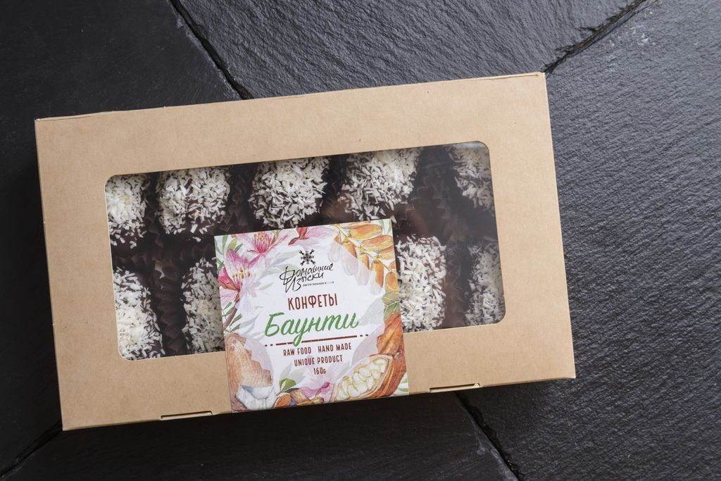 Состав: кокосовая стружка, финиковая паста, масло кокоса, натуральный шоколад (какао масло, какао порошок, сироп топинамбура), миндаль оживлённый.